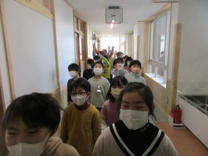 新校舎が完成し、今日は、オリエンテーションを行いました。家庭科室やふれあいルーム、トイレ、エレベーター等、広くてきれいな校舎に子供たちは、「すごい!きれい!」「ここで勉強するのが楽しみ!」と大喜びしていました。