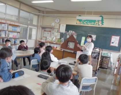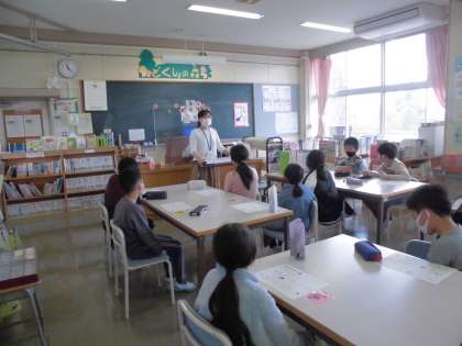 今日図書オリエンテーションを行いました。先生のお話を聞いた後、辞典に関する紙芝居を聞き、辞典について学ぶことができました。その後、実際に一人一人辞典を引いてみたり、今年度初めて本を借りたりして、1時間楽しく活動することができました。