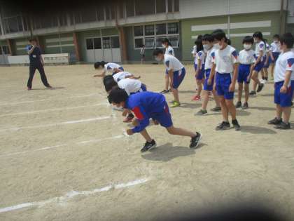 6年生 50m走 公開日 2022/04/15 更新日 2022/04/15 第6学年 体育科の学習で50m走のタイム計測をしました。どの子も運動会を意識しながら、全力で走り切りました。好記録が出た子も思うように記録が出なかった子もいましたが、みんなさらに記録を伸ばそうと意欲を高めていました。