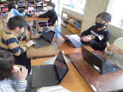 今日、理科の授業でクロムブックを活用した授業を行いました。これまでの授業では、「桜」と「春の生き物」について観察し、クロムブックを使って気付いたことを子供たちが自分でまとめる活動をしていました。今日はそれを友達に見せながら発表する活動をしました。色々な気付きがあり、子供たちはとても楽しく活動しました。