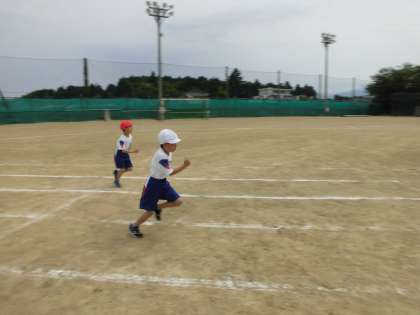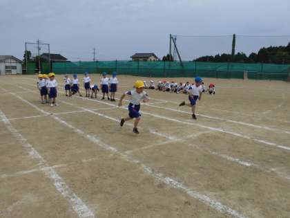 運動会が近いです。徒競走のスタート練習を屋内でしていました。今日は、久々にグラウンドに出て、コースを走りました。スタートもしっかりとでき、最後まで力一杯走った1年生でした。
