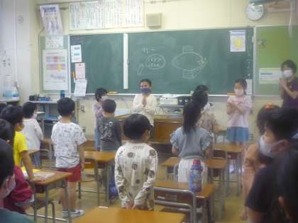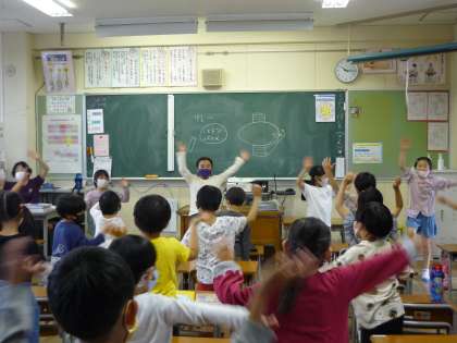 2年生のダンスリーダーが1年生の教室に出向き、玉入れのダンスを1年生におしえました。ダンスを教えているリーダーの一生懸命な姿がとても印象的でした。