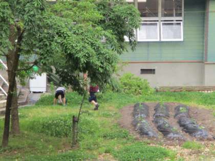 仮設渡り廊下が撤去され、中庭の様子がよく見るようになりました。しいのみ級の子供たちが、畑に植えた野菜を毎朝見にくる姿もよく見えます。