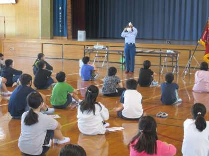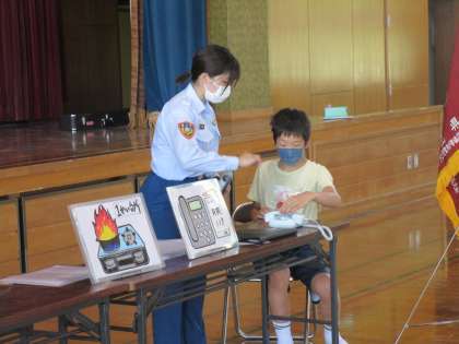 6年生 BFCバッジ授与式・防火教室 公開日 2022/05/26 更新日 2022/05/26 第6学年 消防の方を招いてBFCバッジ授与式を行いました。みんなバッジを胸に着けて、地域の防火や防災に向けてがんばっていこうという思いを高めていました。防火教室では、119番通報体験をしました。