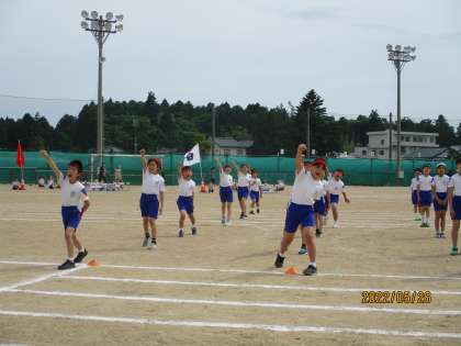4年生「運動会がんばったよ!ー4年生の部ーNo.1」 公開日 2022/05/26 更新日 2022/05/26 第4学年 今日は、運動会の4年生の部でした。6年生の応援を受け、子供たちは80m走やビックタイフーン、選抜リレーに全力で取り組むことができました。 運動会を終えた子供たちは、やり切ったという達成感でいっぱいでした。
