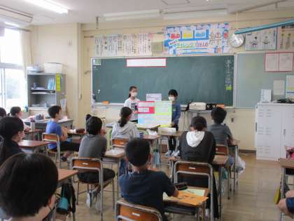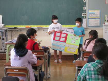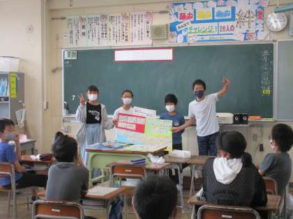 4年生「6年生さんへ、ありがとうのメッセージ♪」 公開日 2022/05/27 更新日 2022/05/27 第4学年 4年生は、昨日の運動会で、応援で盛り上げ、様々な場面でサポートしてくれた6年生に感謝の気持ちを伝えたいとメッセージを書きました。そして、今朝、そのメッセージを学級代表が6年生の教室に届けに行きました。 最初は、少し緊張気味の4年生でしたが、6年生が温かい雰囲気で4年生を迎え入れてくれたので、最後には笑顔になっていました。4年生の思いが、6年生に伝わったらうれしいです。