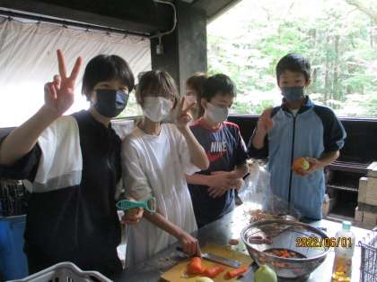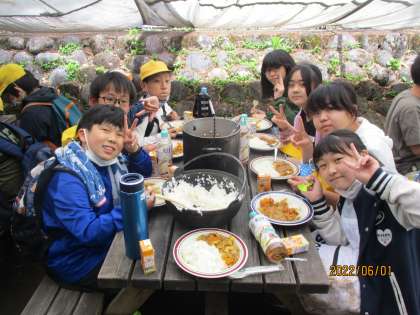宿泊学習2日目は野外炊飯をしました。協力して作ったカレーは、とてもおいしかったようです。