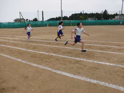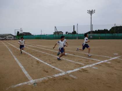今日は、50mのタイムを計測しました。子供たちは、スタートの姿勢や腕の使い方等を意識して、一生懸命取り組んでいました。4月のときよりもレベルアップした子供も多く、子供たちの成長が感じられました。