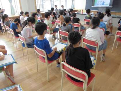 今日3Rについてのお話をくわしく聞く「3R推進スクール」がありました。子供たちは3Rについて知らないことをメモしながら真剣に聞くことができました。社会の授業では次にごみについて学習するので、これから生かしていってほしいと思います。