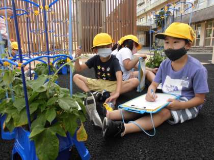 1年生 アサガオの観察 公開日 2022/06/22 更新日 2022/06/22 第1学年 伸びてきたつるを観察し、カードに記録し、追肥をしました。 支柱に巻き付いているつるを見て「くるくるしてる!」と教えてくれました。つるに毛が生えているのを見て、「つるにもしゃもしゃがあった!」と記録していました。子供ならではの表現に心が温まります。