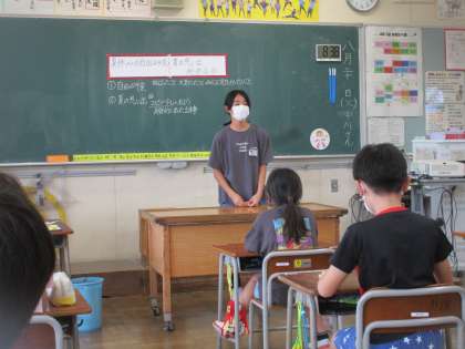 4年生「夏休みの思い出発表会」 公開日 2022/08/30 更新日 2022/08/30 第4学年 今日は、夏休みに取り組んだ自由研究と夏休みの思い出について、一人一人がクラスのみんなの前で話をしました。子供たちの話から、いろいろなことにチャレンジしたり、学習に一生懸命取り組んだりと、充実した夏休みだったことが伝わってきました。