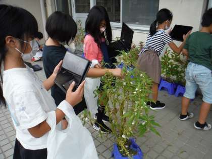 理科の学習では、ホウセンカの生長を観察しています。今日は夏休みに育てたホウセンカが、花を咲かせた後にどうなっているかにつて調べました。花が咲いた後の部分をよく見ると、小さくふくらんだ実がいくつもできていたことに驚いていました。さらにその実をさわると、クルンと勢いよく皮がはがれ、中から種が出てきたことにさらにびっくりしていました。最初は小さな1粒の種が、とてもたくさんの種になってきたことに感動していました。
