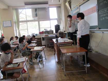 2学期第3週 公開日 2022/09/12 更新日 2022/09/12 学校より 2学期に入り、天候が不安定な日が多かったように思いますが、今のところ、今週は晴れや曇りの日が続く予報となっており、安心しています。 4年生が理科の学習で栽培している中庭のヘチマが、大きな実をつけています。実りの秋の到来です。 1年生と6年生では、教育実習生と算数の学習に取り組んでいました。実習生の問いかけに、どちらも活発に発表していました。