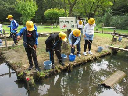 4年生 校外学習「呉羽青少年自然の家」3 公開日 2022/09/15 更新日 2022/09/15 第4学年 2組のザリガニつりの様子です。みんな楽しみながらザリガニつりをすることができました。ザリガニをつるのはとても難しかったのですが、最後まで一生懸命取り組む様子が伝わってきました。今までしたことのない経験ができて、子供たちはとても嬉しかったようです!
