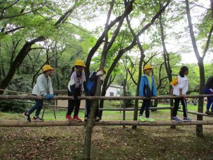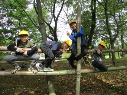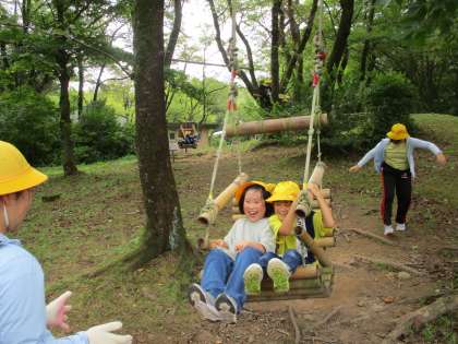 4年生 校外学習「呉羽青少年自然の家」5 公開日 2022/09/15 更新日 2022/09/15 第4学年 2組の竹ジャングルの様子です。子供たちは、竹ジャングルと隣にあるブランコをとても楽しそうに遊んでいました。