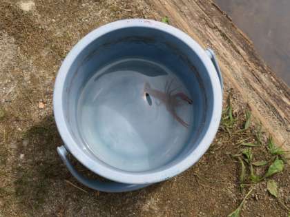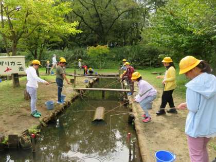4年生:校外学習「呉羽青少年自然の家2」 公開日 2022/09/15 更新日 2022/09/15 第4学年 午前中の活動「ザリガニ釣り」の1組の様子です。ザリガニ釣りは、なかなか難しかったのですが、子供たちは根気強くがんばっていました。釣れたときには、「やったー!」と大喜びしていました。