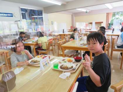 4年生 校外学習「呉羽青少年自然の家」7 公開日 2022/09/15 更新日 2022/09/15 第4学年 2組の昼食の様子です。おいしいご飯をたくさん食べることができて子供たちは大満足でした!ご飯を食べて、午後からの楽しい池遊びに向けて力をつけることができました。