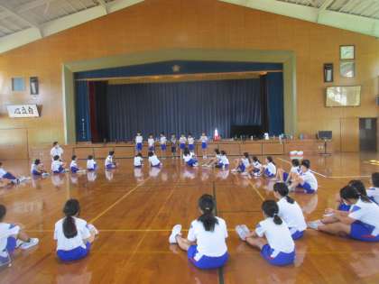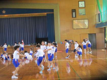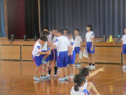 4年生「エンジョイ・チャレンジ!学年集会♪」 公開日 2022/09/19 更新日 2022/09/19 第4学年 16日、宿泊学習の夜に予定していた「エンジョイ・チャレンジ!学年集会」を体育館で行いました。これまで集会係の子供たちが一生懸命準備を進めてくれていたので、学年みんなで思い切り楽しもうと学校で行いました。子供たちは、班のみんなと協力しながら、楽しくクイズやゲームに取り組んでいました。