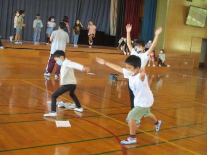 2時間目、3年生が早速ステージを使って、練習をしていました。ステージ以外の場所では、発表場面のグループごとに自主練習を行っており、互いに見合ったりアドバイスし合ったりする姿に、子供たちの成長を感じました。