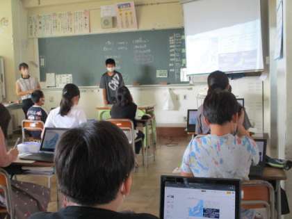 5年生は、社会科で、日本の漁業について、各自が調べたことを発表し、発表内容について考えを交流していました。日本の漁業の実態や課題について、子供たちなりに迫る学習でした。