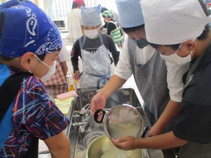 ごはんとみそ汁 5年2組 公開日 2022/09/30 更新日 2022/09/30 第5学年 今日は2組でごはんを炊きました。ふっくらと炊きあがったごはんに子供たちは、「いつもよりおいしい」と、喜んで食べていました。来週の宿泊学習での野外炊飯もきっとおいしいごはんが炊けることでしょう。