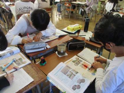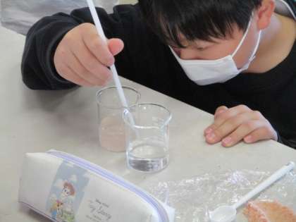 理科の実験・観察 公開日 2022/10/20 更新日 2022/10/20 学校より 昨日に引き続き、立山連峰が美しく見えるよい天気となりました。 5年生、6年生と理科の実験を行っていました。5年生は、「物のとけ方」の学習です。6年生は「地層のでき方」の学習です。どちらも実験・観察に熱心に取り組んでいました。 1年生では、図画工作の造形遊びで色水を作っていました。「見て見て、きれいでしょう?」という声があちらこちらで上がっていました。