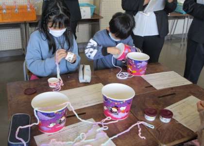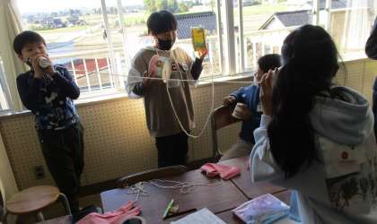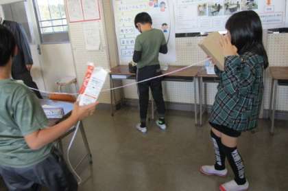 3年生 音を出して調べよう! 公開日 2022/11/02 更新日 2022/11/02 第3学年 理科「音を出して調べよう」の学習では、プラスチックコップや毛糸などさまざまな材料を使って『オリジナル糸電話』をつくり、聞こえるかどうか試してみました。子供たちは、いろいろなことに気付きながら、楽しんで学習に取り組んでいます。