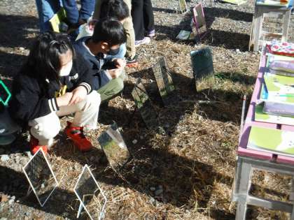 理科の学習では、太陽の光のひみつについて調べています。雲一つない晴天の下、太陽の光を集めると明るさや温かさは変わるのかを実験しました。鏡1枚分、2枚分、3枚分、10枚分と鏡を使ってはね返す光の量を変えながら、温度を比べました。明るさは見てすぐに分かったものの、温度については半信半疑だった子供たち。徐々に温度計の目盛りがぐんぐん上がり出すと、驚いていました。実験で太陽の光のひみつが分かった子供たちは、とても満足していました。