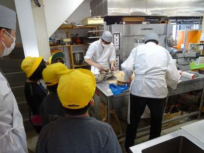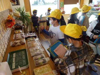 総合的な学習の時間には、「月岡のすてきマップを作ろう」月岡にある店について調べました。菓子処榎屋では、お店の中に一歩入った瞬間に「いいにおい!」と、みんなお菓子の甘い香りにワクワクしていました。子供たちのいろいろな質問にも丁寧に教えていただき、榎屋さんのことがもっと好きになりました。さらに、お菓子の工房も見学させていただき、子供たちは充実した見学になりました。榎屋の皆さん、お忙しい中、とても詳しく丁寧に対応していただきありがとうございました。