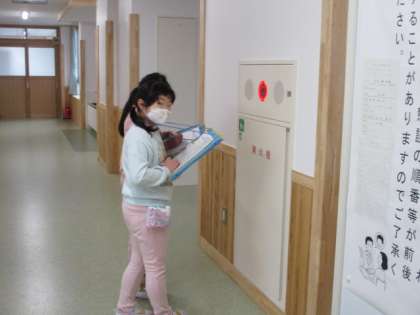 その中で、3年生の子供たちが、校舎の消防設備調べを行っていました。消火器や消火栓を見付け、地図に書いていました。