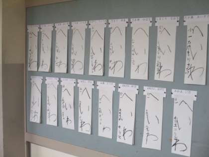 どの学年も、書き初め練習が始まっています。写真は、一年生の書き初めです。しっかり練習して、3学期始業式の日に行う書き初め大会に臨んでほしいです。