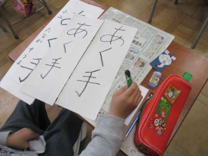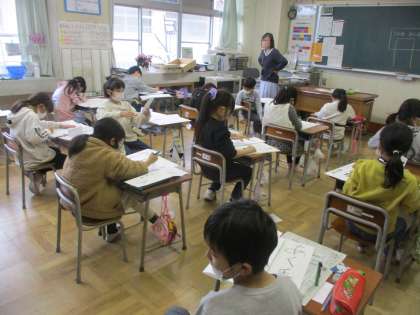 2年生 書き初め練習 公開日 2022/12/19 更新日 2022/12/19 第2学年 3学期始業式での書き初め大会に向けて、練習を始めた2年生です。 字のバランスをとることが難しいらしく、慎重に筆を進める姿が印象的でした。 久しぶりに使う硬筆墨にどきどきしながらも、お手本のような字を目指し、一生懸命に取り組んでいました。 本番での書き初めが楽しみな練習になりました。