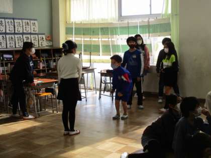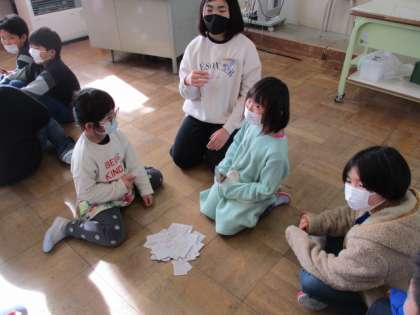 本日の四つ葉タイムは、縦割り班で遊びました。、長縄跳びやハンカチ落とし、カードゲームやクイズ等、班ごとに学年の枠を超えて活動を楽しんでいました。