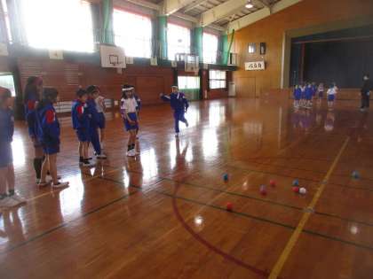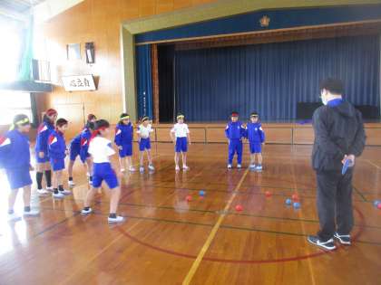 また、先日月岡小学校に「ボッチャ」の用具が届き、体験できる機会に恵まれました。子供たちは、とても楽しかったようで大盛り上がりで競技に取り組んでいました。