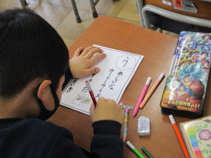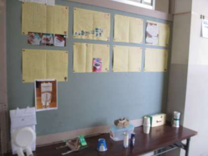 写真は、5年生の社会科の公害に関する学習の様子です。今週金曜日にはイタイイタイ病資料館へ校外学習へ行くことになっており、事前学習でもあります。1年生は、給食かるたを作成していました。給食週間に当たり、全校で取り組んでいます。2年生教室前には、国語科で書いた、おもちゃの作り方の説明書(作文)と、実際につくったおもちゃが展示してあります。手にとって遊んでみたくなるおもちゃ、そして作り方を知りたくなるおもちゃが並んでいます。