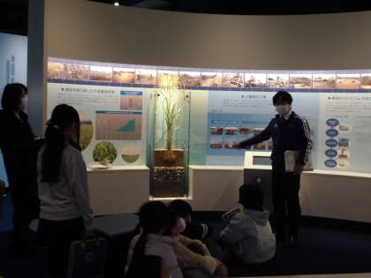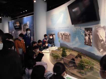 イタイイタイ病資料館に行って学習しました。貴重な資料を見たり、説明を聞いたりして、多くのことを学びました。さらに、語り部の方のお話を聞いて、被害者のつらさだけでなく、家族の思いや苦労をたくさん教えていただきました。そのおかげで、今の安心できる暮らしがあることに気付いた子供たちは、今後環境問題が起きないよう、自分たちにできることをしていきたいという思いを強めました。