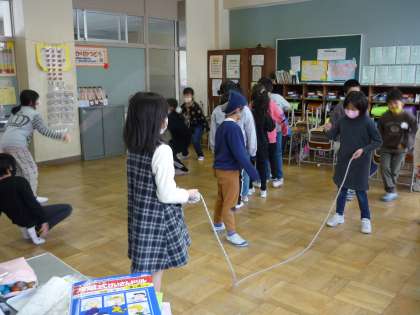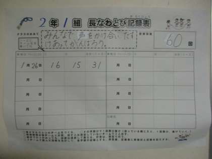 2月6日から長縄跳び大会が行われます。2年生各学級でも一丸となって休み時間に練習を行っています。