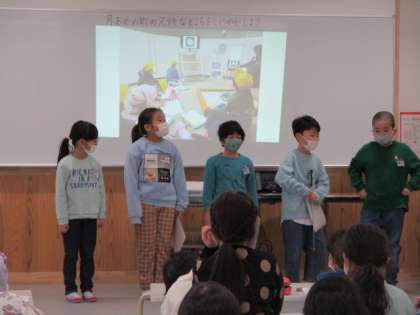 写真の1枚目は、昨日の、2年生の生活科地域探検の発表の様子です。探検にご協力いただいた地域の皆様、ありがとうございました。探検で見付けた「素敵」を、探検グループごとに、クイズにするなど工夫を凝らして発表していました。子供たちもそして私たち教員も初めて知ることがたくさんありました。