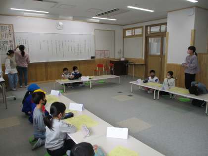 卒業を祝うプロジェクトのため、1〜5年生の学級代表を中心に代表委員会を開きました。内容は、このプロジェクトの目当てを決めることです。