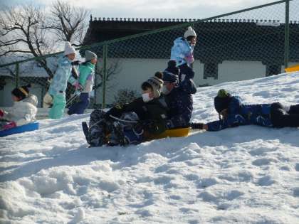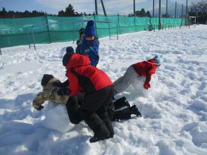 雪遊びをして楽しみました! 公開日 2023/02/02 更新日 2023/02/02 第2学年 2月1日(木) 今日、生活科の時間にグラウンドに出て雪遊びをしました。雪だるまを作ったり、雪合戦をしたり、そり遊びをしたりと、思う存分雪遊びを満喫することができました。