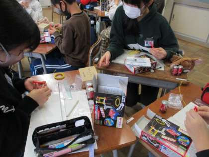 6年生は、で卒業プロジェクトに取り組んでいます。各プロジェクトチームに分かれ、話合いをしたり製作を進めたり、みんな一生懸命な様子でした。