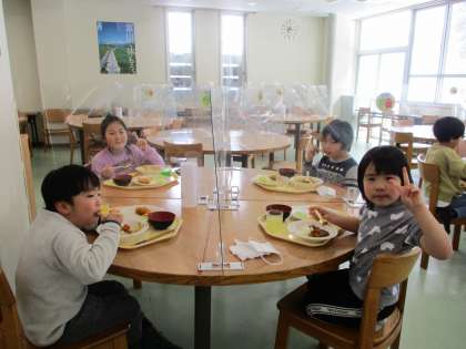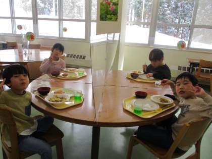 お昼は、食堂でバイキング。カレーライスでした。 おかわりもして、たくさん食べていた子供たちです。