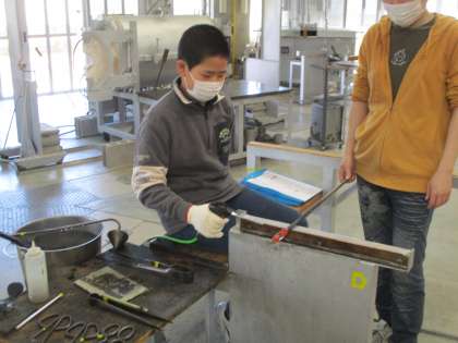 ガラス工房2 公開日 2023/02/22 更新日 2023/02/22 第6学年 今日のペーパーウエイトの色味は、冷めるとまた変わるそうです。 なかなかできない体験に子供たちは「楽しかった!」と話していました。 すてきな思い出がまた一つ増えました(^^)