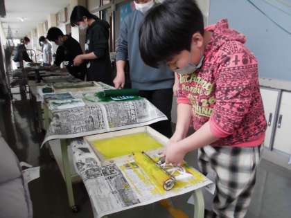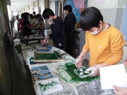 5年生 一版連結版画に挑戦! 公開日 2023/02/27 更新日 2023/02/27 第5学年 今日は、版を1枚の和紙に刷り、次回に刷る色への見通しをもてるようにしました。てきぱきと動く姿が頼もしく感じられました。 次回は、版を4回刷ることで、オリジナルの作品を完成させます。どんな作品が出来上がるか楽しみです。
