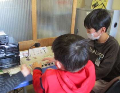 右側の写真は、給食時間の校内放送に取り組む5年生です。昨日紹介したように、卒業を祝う週間中、校内放送で、6年生に関する情報を5年生が取材して伝えています。今日も元気なトークを繰り広げていました。