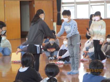 今日は6年生から5年生に委員会の仕事が引き継がれました。6年生から受け取った委員会をファイルを胸に、新たな目標に向かってがんばる5年生です。