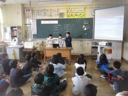 4年生「来年度に向けて!ー総合的な学習の時間ー」 公開日 2023/03/02 更新日 2023/03/02 第4学年 総合的な学習の時間に、自分の未来について考えています。今日は、来年度所属する委員会活動について調べてきたグループが、発表をしました。子供たちは、来年度どの委員会に入ろうかと考えながら、真剣に話を聞いていました。