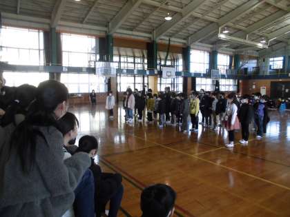 1年生 ありがとうございました! 公開日 2023/03/03 更新日 2023/03/03 第1学年 卒業を祝う集会では、6年生に対決を挑んだ1年生です。 バランス平均台での陣取りゲームに、折り返しリレー。6年生の優しさ(ユーモア?!)で、2勝した1年生でした。 毎日のように1年生の教室に来て、一緒に遊んでくれる6年生と過ごせるのも、あと少しとなりました。残りの日々も、6年生への「ありがとう」の気持ちを忘れずに過ごしてほしいと思います。
