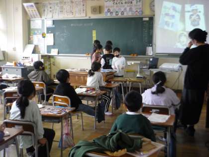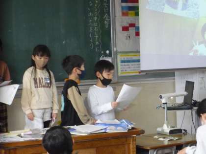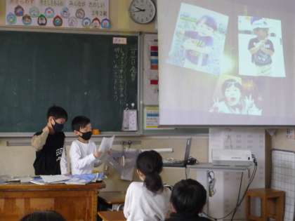 生活科の「わたしたんけん」の学習では、今までの自分について調べています。まずは、自分の小さい頃のことを家族の方にインタビューし、インタビューカードにまとめる活動をしました。今日は、聞いてきたことをクラスの友達に紹介しました。小さい頃の写真を写しながらの発表に、「かわいい」「そうだったんだ」「今と変わらないね」というつぶやきがあちらこちらから聞こえました。