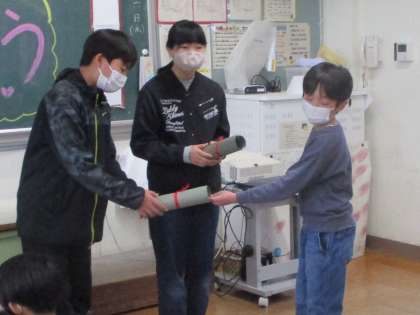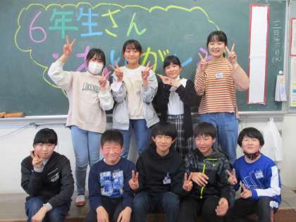 最後の四つ葉タイム 5年生 公開日 2023/03/16 更新日 2023/03/16 第5学年 6年生と過ごす最後の四つ葉タイムでは、縦割り班のみんなからメッセージを渡しました。「今までありがとうござます」と言って渡すと、6年生からも「ありがとう、楽しかったよ」と返事がもらえました。6年生もうれしそうでした。最後に5年生と6年生で記念撮影。短い時間でしたが、気持ちを伝えられたようです。 1年間、縦割り班を引っ張ってくれて、6年生さん、本当にありがとう!